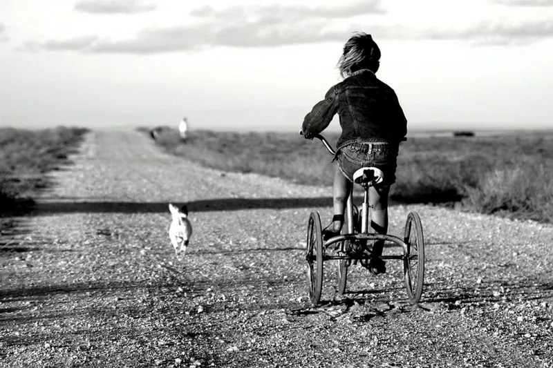 My daughter Jessie on her Grandfathers farm, riding his old bike.